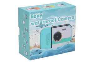 Dětský digitální fotoaparát voděodolný modrý - foto 12Mpx, video Full HD. Rozměry 10,7x2,5x7 cm. Rozlišení fotografií 12 megapixelů, videa Full HD (1920x1080). Blesk, časovač 10s/5s/2s, digitální zoom, různé efekty (rámečky, vložené animace, deformace, filtry) fotografií, hry, mp3 přehrávač, 2,0 palcový displej. Vestavěná 600mAh Li-ion baterie, USB-C kabel součástí. Formát fotografií jpg, videa avi. Kompatibilní s micro SD kartami - max. 32GB. Paměťová karta není součástí.
