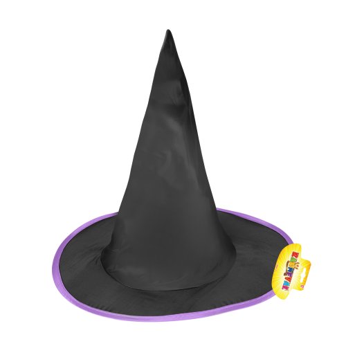 Čarodějnický klobouk nesmí chybět ve tvé karnevalové sbírce! Klobouk je vyroben z černé šusťákoviny a je dekorován fialovým lemem.