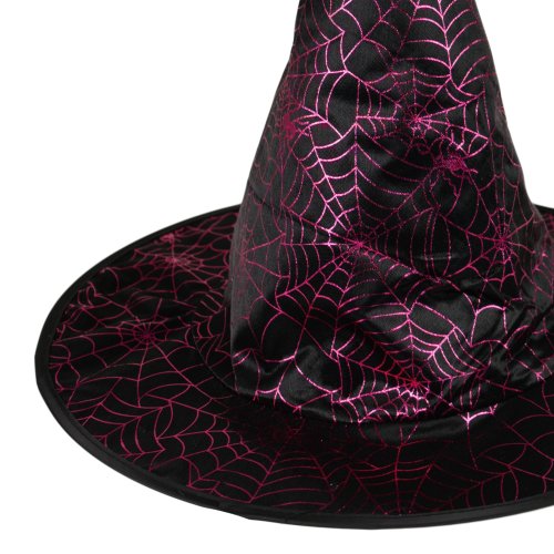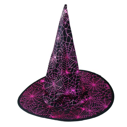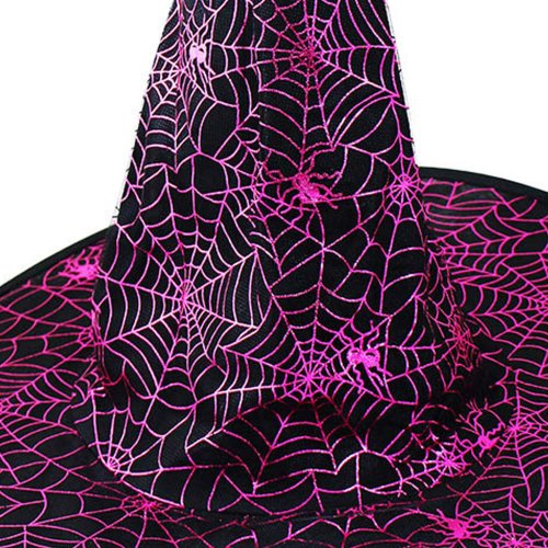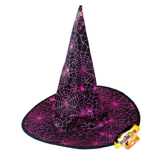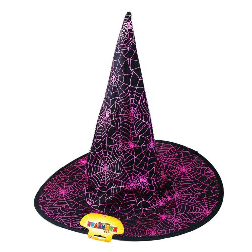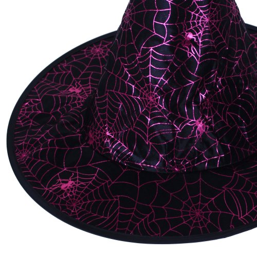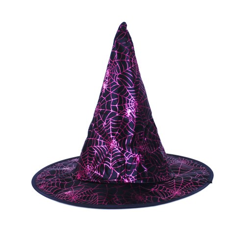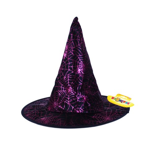 Veselý čarodějnický klobouk je skvělým doplňkem na karneval! Klobouk černé barvy je zdoben fialovými, třpytivými pavučinami.