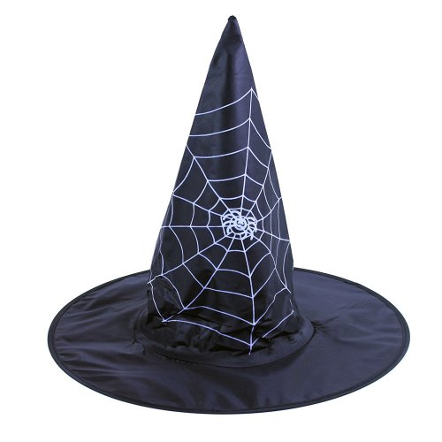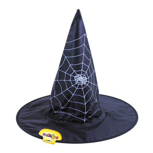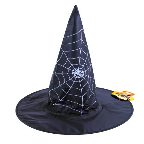 Senzační klobouk pro malé čaroděje a čarodějnice! Tento černý elegán je zdoben bílou pavučinou s pavoukem. Ideální doplněk na Halloweenskou párty. Staň se hvězdou karnevalového večírku díky tomuto nepřehlédnutelnému klobouku!