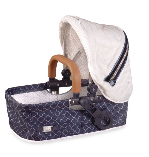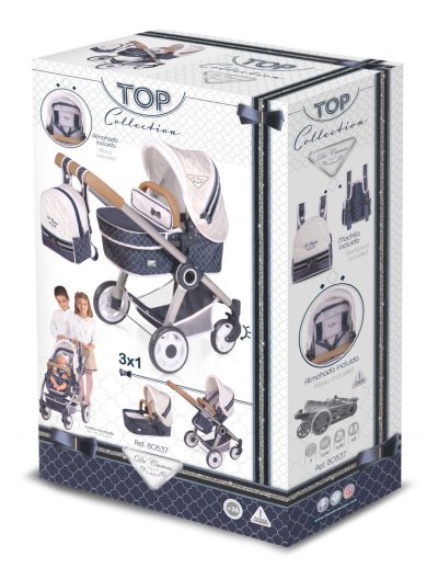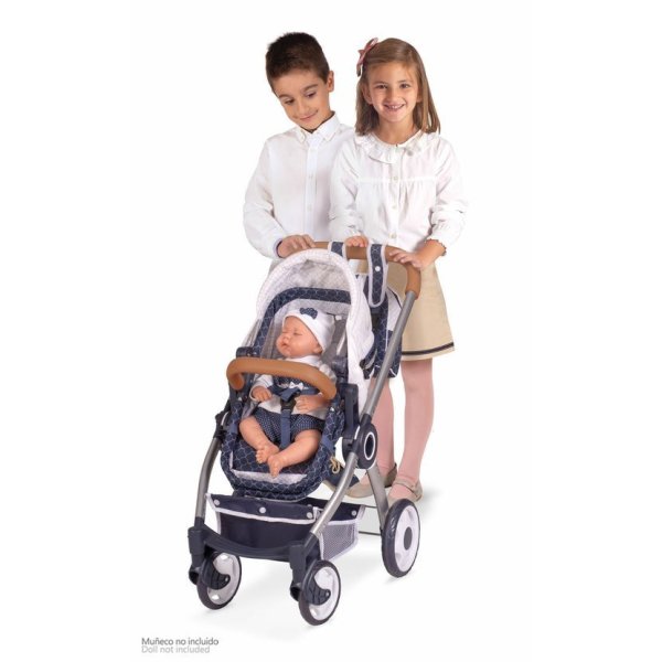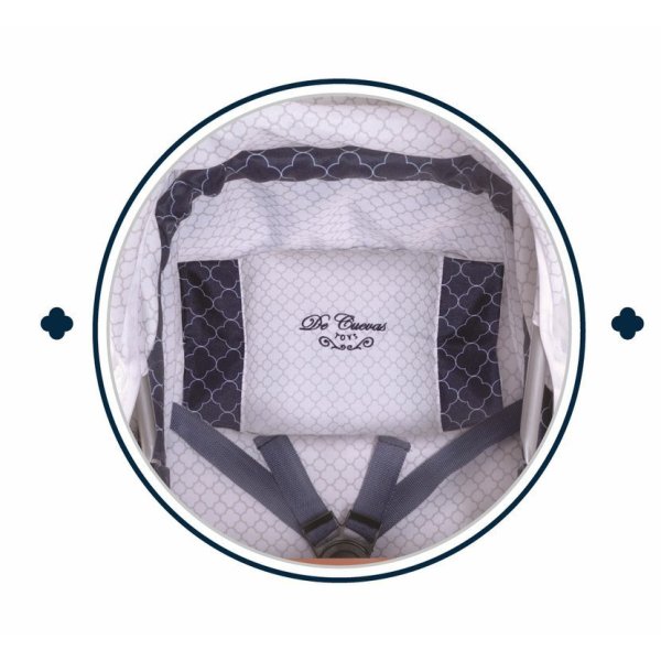 Hračka vypadá skoro jako reálný kočárek pro miminka. Stylové barvy a kvalitní materiály doplňují jeho luxusní provedení. Zajímavým prvkem jsou madla v imitaci dřeva nebo kůže a kryt na korbičku s prošíváním a suchými zipy. Vaše dítě si s kočárkem může hrát doma, na zahradě nebo si ho vezme s sebou na procházku. Do úložného prostoru ve spodní části si uloží věci.