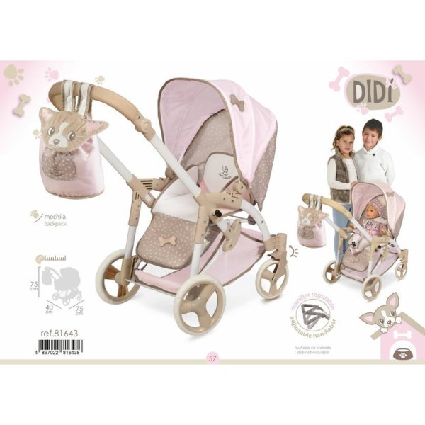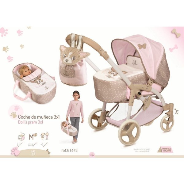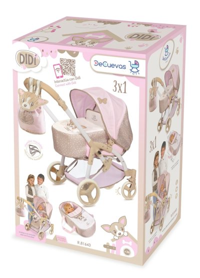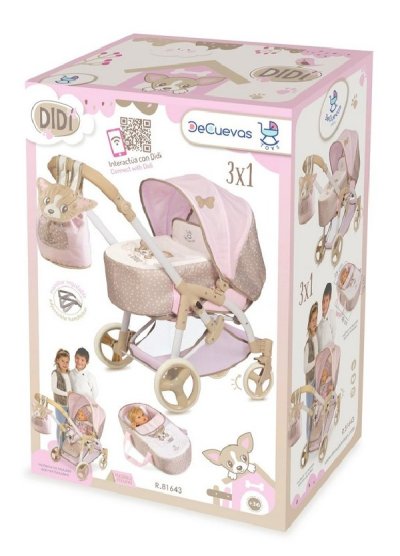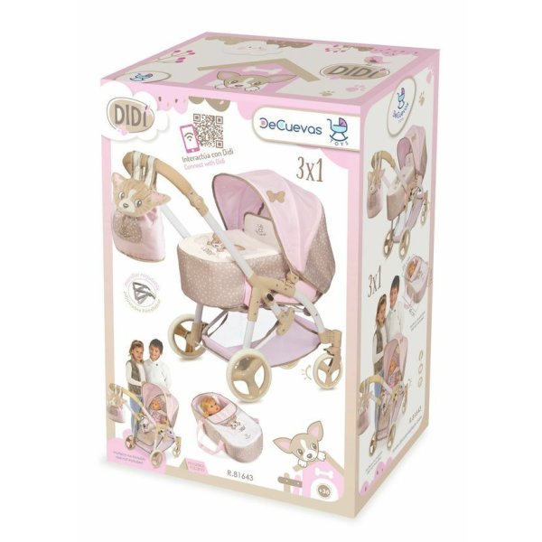 Skládací kočárek pro panenky 3v1 DeCuevas DIDI 2021 v jemném designu potěší každou malou slečnu. Díky výškově nastavitelné rukojeti a funkčním doplňkům je ideální pro předškolní děti od 3 let. Kočárek vás zaujme krásným provedením s vyšívaným motivem roztomilého štěňátka čivavy.
