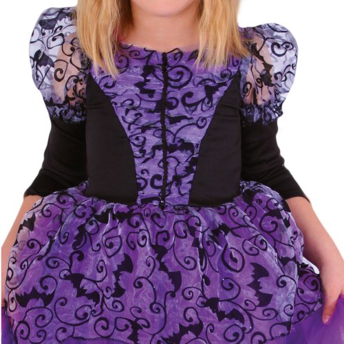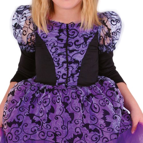 Nádherný kostým na Halloween pro všechny malé čarodějnice! Kostýmek o velikosti M je určen pro holčičky ve věkovém rozmezí 6-8 let (117-128 cm). Fialové šaty s nadýchanou sukní a tříčtvrtečním rukávem jsou zdobeny černým netopýřím vzorem. Součástí balení je také perfektně sladěný, stejně zdobený klobouk. Nejen letos je potřeba myslet EKO-nomicky i EKO-logicky! EKO-balení je vhodné zejména pro e-shopy kde zákazník nakupuje dle fotografie a není třeba velkého balení s věšákem. EKO-logicky – na balení bylo použito méně plastu a dalších materiálů. Jedná se o malý transparentní obal s fotografií. EKO-nomicky –EKO-obal zabere jen polovinu místa – šetřete skladová místa s námi!