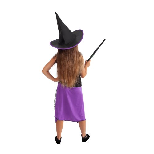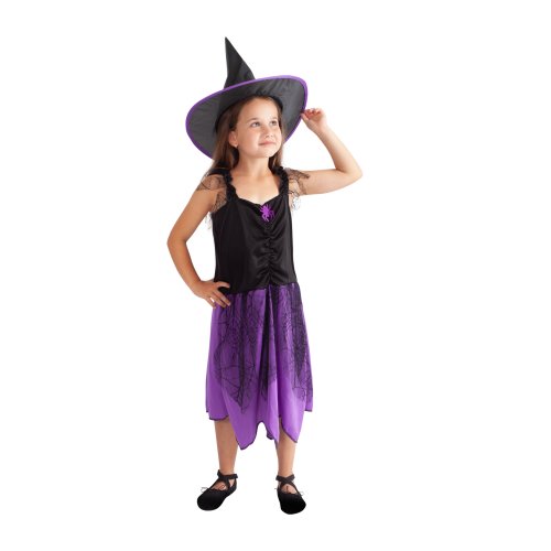 Roztomilý karnevalový kostým černo-fialové barvy udělá radost každé holčičce! Souprava obsahuje šaty dekorované pavučinkou a perfektně sladěný klobouk. Set ve velikosti S je určen pro holčičky ve věkovém rozmezí 3-6 let. Vhodný i na oslavu Halloweenu! Nejen letos je potřeba myslet EKO-nomicky i EKO-logicky! EKO-balení je vhodné zejména pro e-shopy kde zákazník nakupuje dle fotografie a není třeba velkého balení s věšákem. EKO-logicky – na balení bylo použito méně plastu a dalších materiálů. Jedná se o malý transparentní obal s fotografií. EKO-nomicky –EKO-obal zabere jen polovinu místa – šetřete skladová místa s námi!