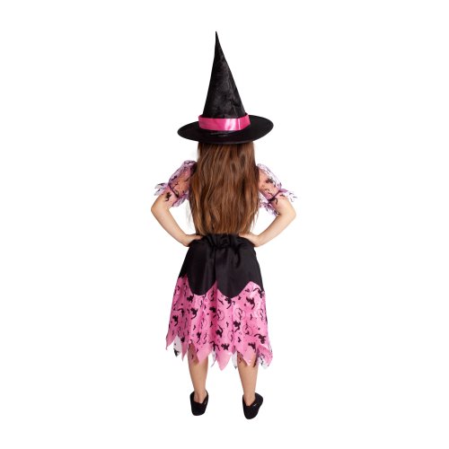 Nádherný kostým na Halloween pro všechny malé čarodějnice! Kostým růžovo-černé barvy ve velikosti M je určen pro holčičky ve věkovém rozmezí 6-8 let (117 - 128 cm). Šaty jsou dekorovány potiskem kočiček a netopýrů. Součástí kostýmu je perfektně sladěný čarodějnický klobouk. S tímto úchvatným kostýmem se zaručeně staneš hvězdou karnevalu i Halloweenu! Nejen letos je potřeba myslet EKO-nomicky i EKO-logicky! EKO-balení je vhodné zejména pro e-shopy kde zákazník nakupuje dle fotografie a není třeba velkého balení s věšákem. EKO-logicky – na balení bylo použito méně plastu a dalších materiálů. Jedná se o malý transparentní obal s fotografií. EKO-nomicky –EKO-obal zabere jen polovinu místa – šetřete skladová místa s námi!