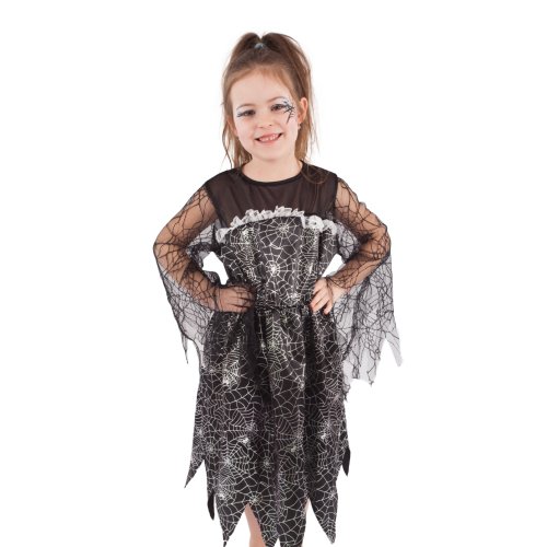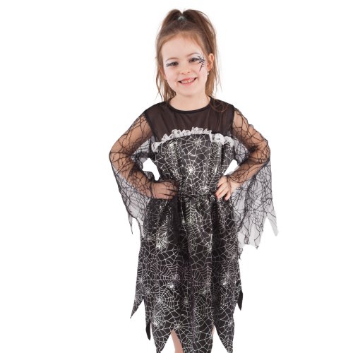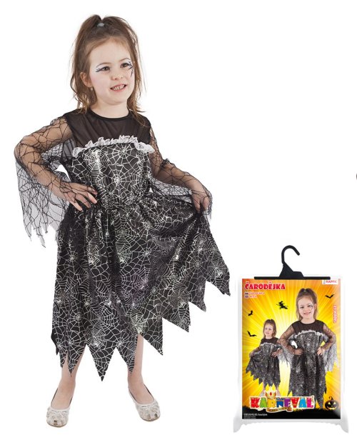 Magický karnevalový kostým pro malé čarodějnice! Kostým ve velikosti M je určen pro holčičky ve věkovém rozmezí 6-8 let (117-128 cm). Černé šaty jsou dekorovány stříbrnou pavučinkou. S tímto úchvatným kostýmem se zaručeně staneš hvězdou karnevalu i Halloweenu! Koště ani hůlka nejsou součástí balení.
