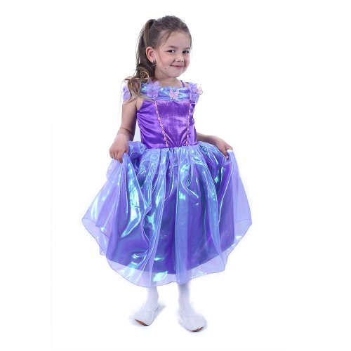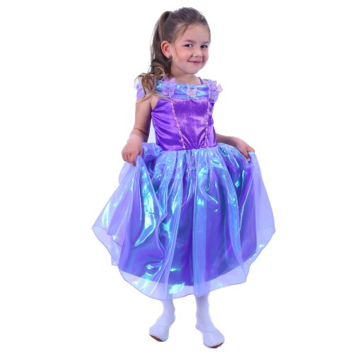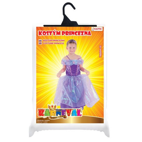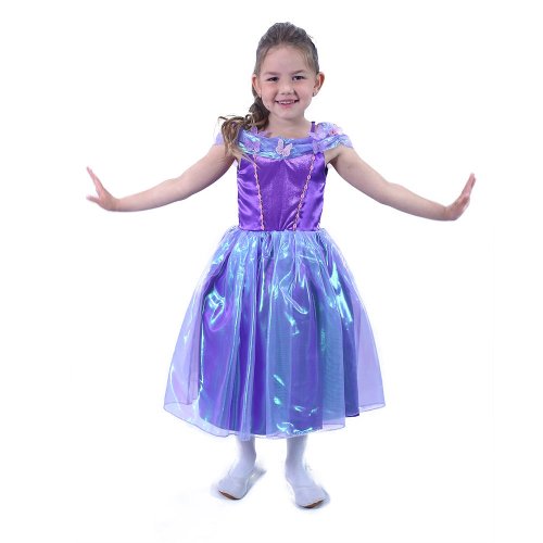 Okouzlující karnevalový kostým s motivem princezny ve fialové barvě, horní část je zdobena stylovými motýlky. Kostým je ve velikosti M a je určen pro holčičky ve věkovém rozmezí 6-8 let (117-128 cm).