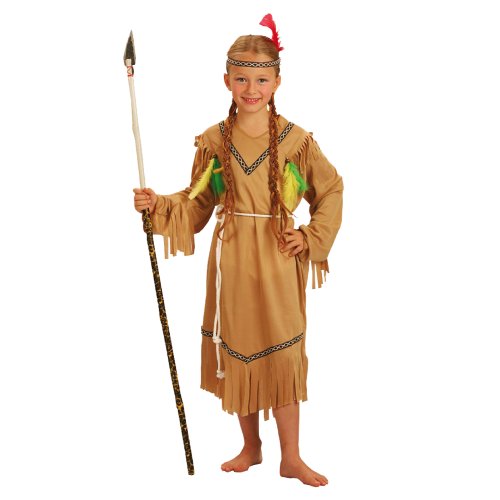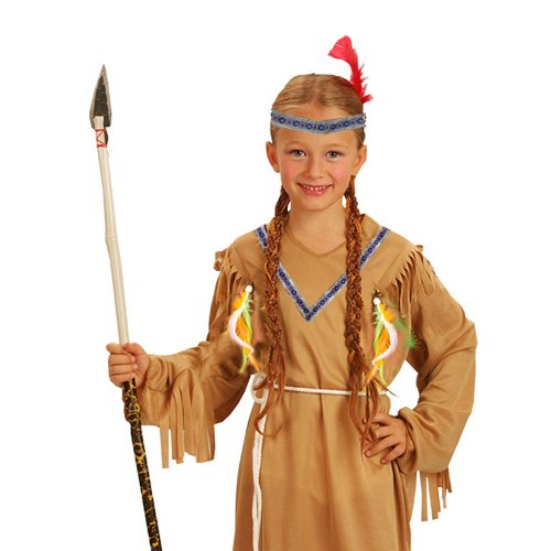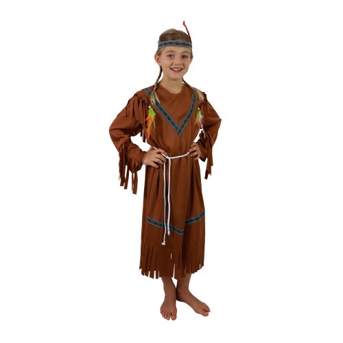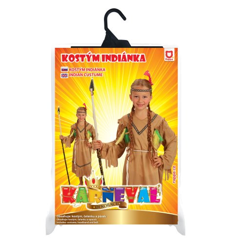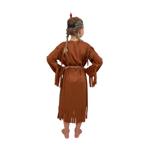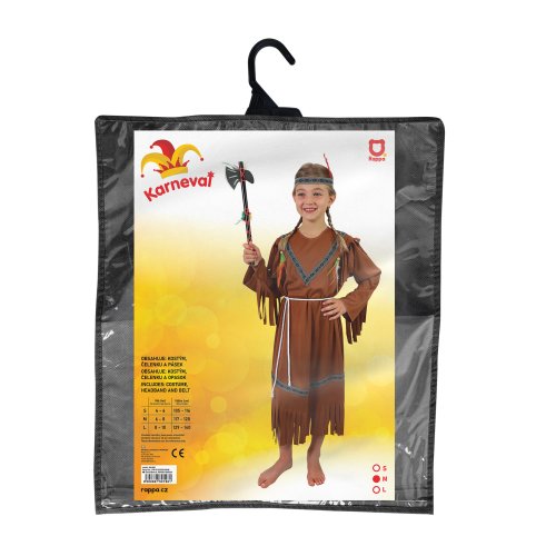 Stylový karnevalový kostým v motivu indiánské slečny! Kostým hnědé barvy ve velikosti M je určen pro děvčata ve věkovém rozmezí 6-8 let (117-128 cm). Balení obsahuje šaty s indiánskými vzory, šňůrku sloužící jako opasek a perfektně sladěnou čelenku. Celé šaty jsou navíc zdobeny střapci. Sekera není součástí balení.
