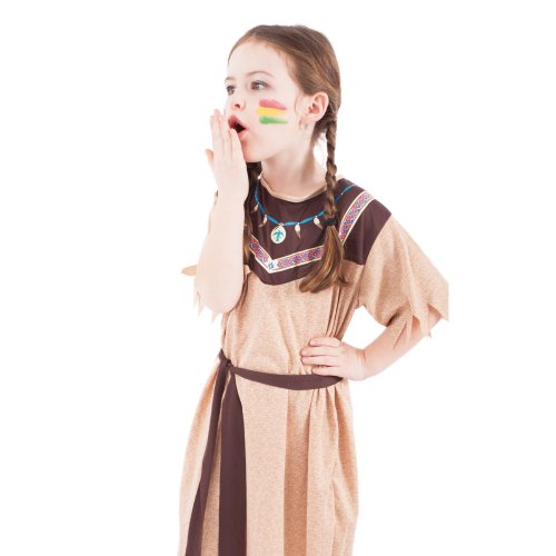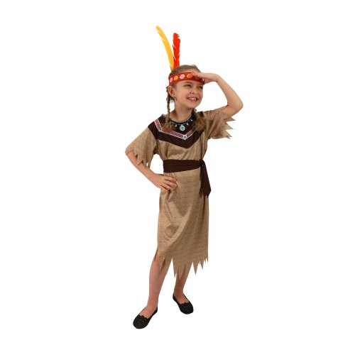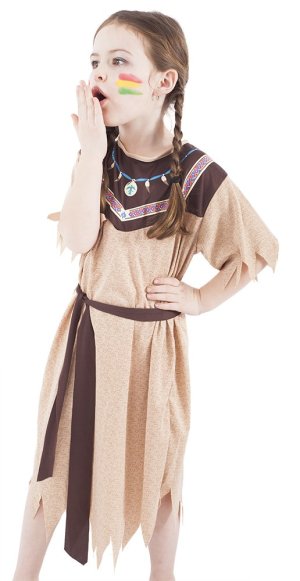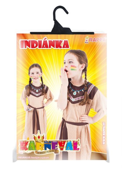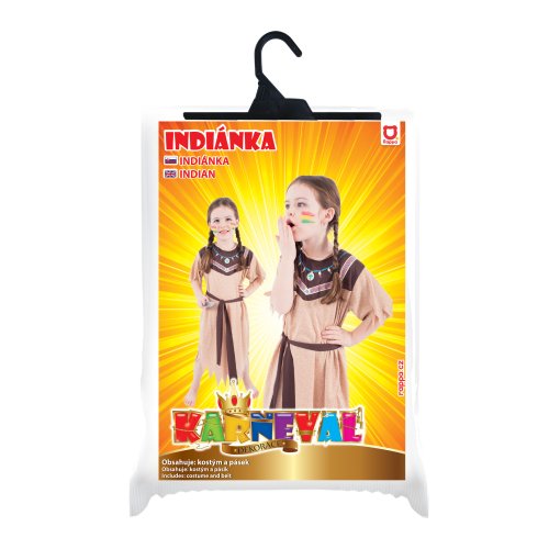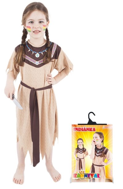 Stylový karnevalový kostým v motivu indiánské slečny! Kostým hnědé barvy ve velikosti M je určen pro děvčata ve věkovém rozmezí 6-8 let (117-128cm). Staň se největší hvězdou karnevalu! Sekera ani čelenka nejsou součástí balení.