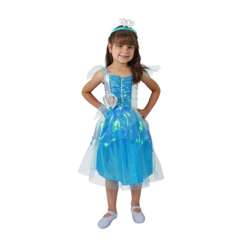 Úchvatný karnevalový kostým ve stylu mořské princezny! Kostým ve famózní modré barvě s flitry a velikosti S je určen pro holčičky ve věkovém rozmezí 4-6 let (105-116 cm). Balení obsahuje nadýchané modro-stříbrné šaty a čelenku. Nejen letos je potřeba myslet EKO-nomicky i EKO-logicky! EKO-balení je vhodné zejména pro e-shopy kde zákazník nakupuje dle fotografie a není třeba velkého balení s věšákem. EKO-logicky – na balení bylo použito méně plastu a dalších materiálů. Jedná se o malý transparentní obal s fotografií. EKO-nomicky –EKO-obal zabere jen polovinu místa – šetřete skladová místa s námi!