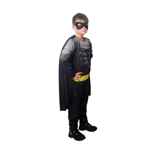 Úchvatný kostým ve stylu pavoučího bojovníka nesmí ve tvé karnevalové sbírce chybět! Kostým ve velikosti S je určen pro chlapečky ve věkovém rozmezí 4-6 let (105-116 cm). Balení obsahuje černo-šedý overal se znakem pavouka na hrudi a je doplněn černým odnímatelným pláštěm a látkovou škraboškou.