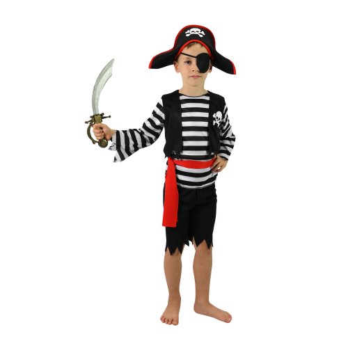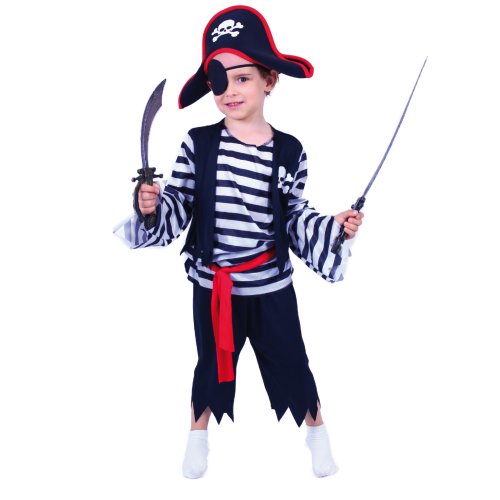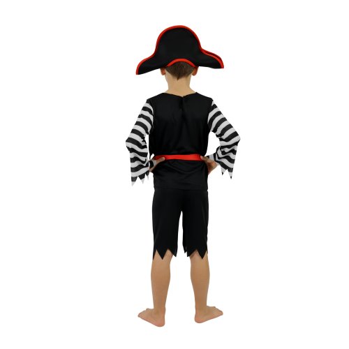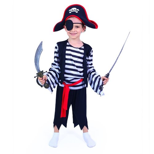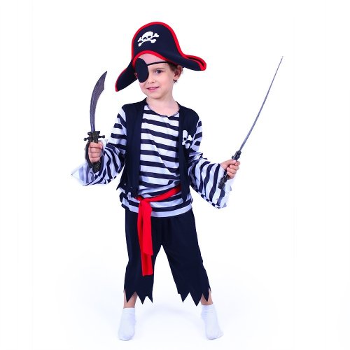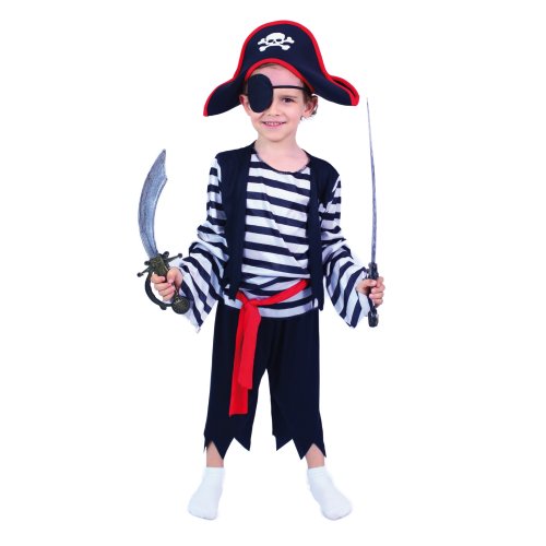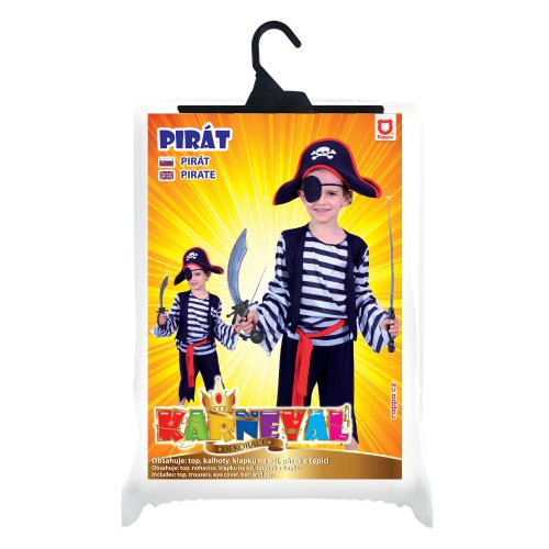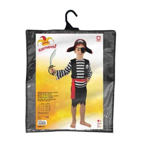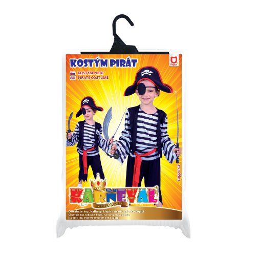 Karnevalový kostým, který tě promění v malého piráta! Kostým ve velikosti S je určen pro chlapce ve věkovém rozmezí 4-6 let (105-116 cm). Balení obsahuje horní díl, kalhoty, pásek, klapku na oko a stylovou pirátskou čepici. Neobsahuje šavli.