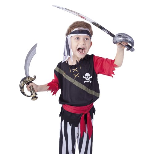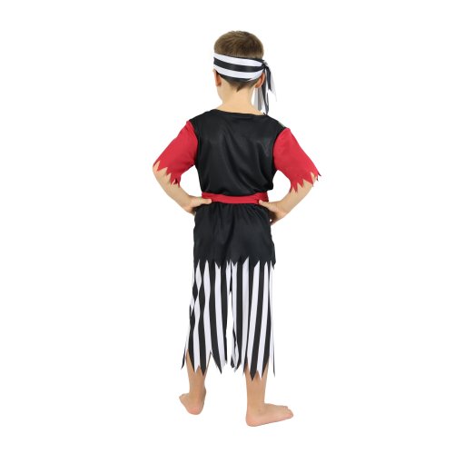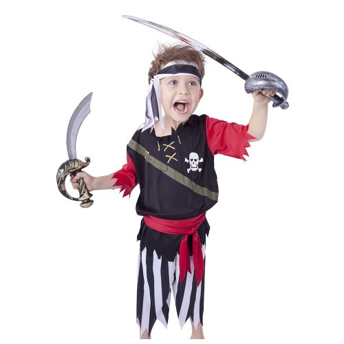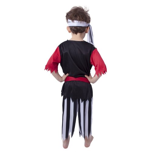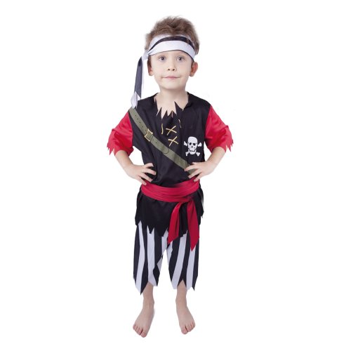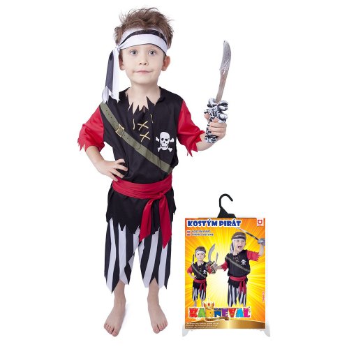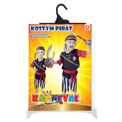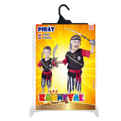 Karnevalový kostým pro opravdického piráta! Kostým ve velikosti S je určen pro chlapce ve věkovém rozmezí 4-6 let (105-116 cm). Pozor, balení obsahuje pásek, horní díl, kalhoty a šátek! Šavle není součástí balení.