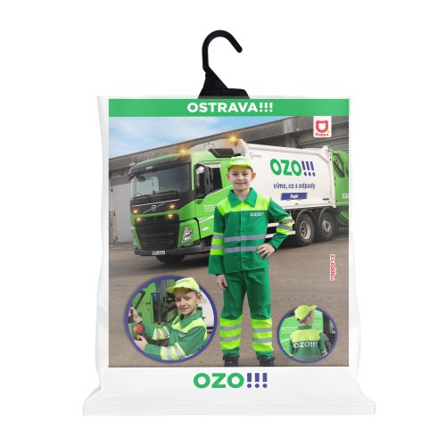Být popelářem byl v dětství sen skoro každého malého chlapce! S tímto exkluzivním dětským kostýmem se v něj proměníte během chvilky! Sada obsahuje blůzu s nápisem OZO!!!, kalhoty a čepici, vše s reflexními pruhy. Kostým velikosti M je určen pro chlapečky ve věkovém rozmezí 6-8 let (117-128 cm).
