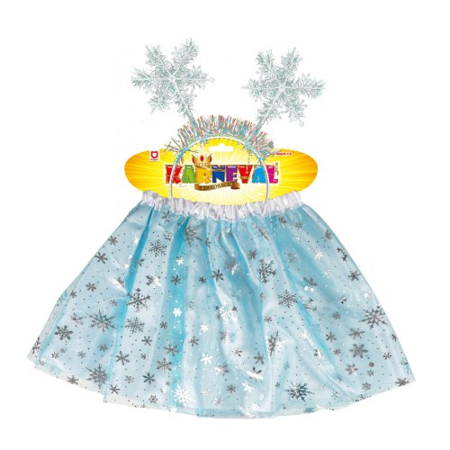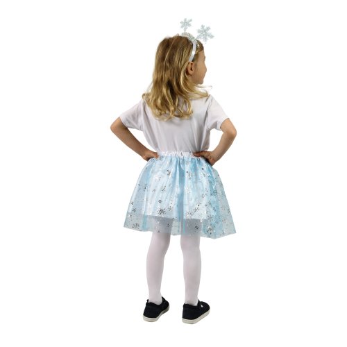 Modrá sukně TUTU v pase na gumičku! Sukýnka je určena pro holčičky ve věkovém rozmezí 3-7 let. Nadýchaná suknička je zdobena třpytivými sněhovými vločkami a saténovým lemováním v pase. Délka sukýnky je cca 30 cm. Čelenka se sněhovými vločkami není součástí.