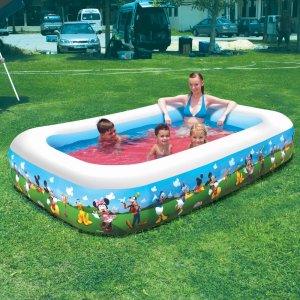 Dětský nafukovací bazén Bestway. Barevný dětský bazén s motivem Mickey Mouse a jeho kamarády. Vhodné pro děti od 3 let. Rozměry: cca 262x175x51cm. Obsah: 778l. Složení: Vinyl.