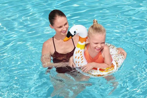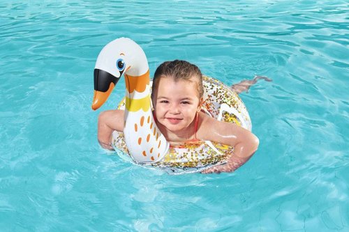 Tento nafukovací kruh je osobitý a má šarm. Dlouhý, elegantní krk je ideální pro uchopení nebo objímání. Má dvě vzduchové komory, které usnadňují nafukování a vyfukování a pomáhají vztlaku na vodě. Odolný materiál použitý k výrobě byl předem testován, aby byla zajištěna jeho trvanlivost v létě i mimo něj. Třpytky, jež zdobí kruh, budou zářit na pláži nebo u bazénu. Lze jej používat od 3 let věku. Nespornou výhodou kola je, že podporuje fyzickou aktivitu.