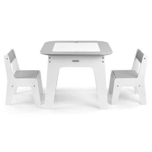 Dětská sada nábytku Olaf Blocks - stůl a dvě židličky je multifunkční komplet navržený tak, aby zajistil dětem pohodlí a prostor pro kreativní hraní a učení. Stůl s dvěma židličkami má decentní barevné provedení, které mu dodává moderní a estetický vzhled, hodící se do každého interiéru.