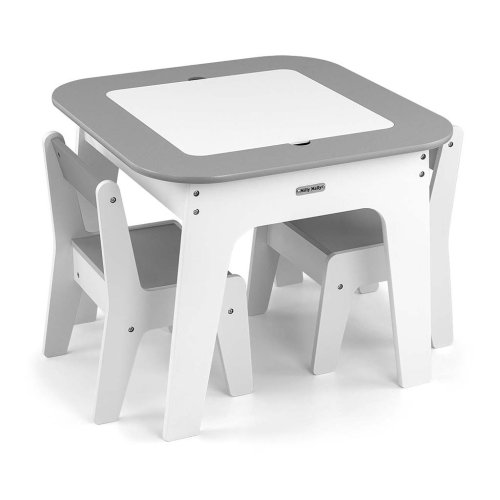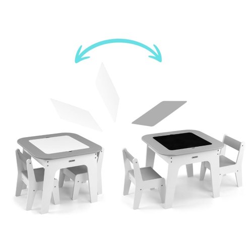 Sada Olaf se vyznačuje jedinečnou deskou – jedna strana vnitřní desky je bílá, zatímco druhá strana je hladká a natřená tabulovou barvou, což je ideální pro kreslení, psaní nebo jiné výtvarné aktivity. Deska je vyjímatelná a pod ní se nachází prostorný úložný prostor, který usnadňuje ukládání hraček, kostek nebo výtvarných potřeb, díky čemuž je udržování pořádku jednodušší.