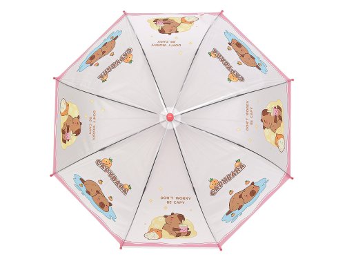 Dětský vystřelovací deštník s motivem kapybary je ideálním společníkem pro deštivé dny. Tento deštník je navržený s ohledem na potřeby dětí, kombinuje stylový vzhled s praktičností. Potah je průsvitný, na rukojeti má deštník visačku, na kterou můžete napsat jméno dítěte. Má klasickou tyč zakončenou pevnou rukojetí. Konstrukce deštníku je z pružných lamel a tvoří osm polí. Hloubka deštníku je 23 cm.