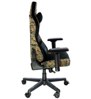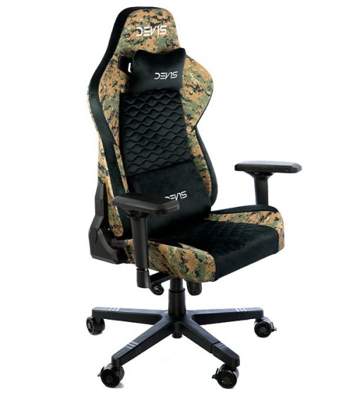 Herní židle DEV1S ARMY je kombinací kvality a tematického vojenského vzhledu. Broušená kůže zajistí spolu s textilní tkaninou vzdušnost a bezkonkurenční pohodlí. Ocelový rám je mimořádně stabilní a poskytuje maximální odolnost. Speciálně tvarované sklopné opěradlo, nastavitelná výška sedáku a polohovatelná bederní opěrka poskytují dobrou oporu a podporují správné držení těla, které potřebujete při dlouhém sezení u počítače. Zajisté potěší také zabrzditelná kolečka.