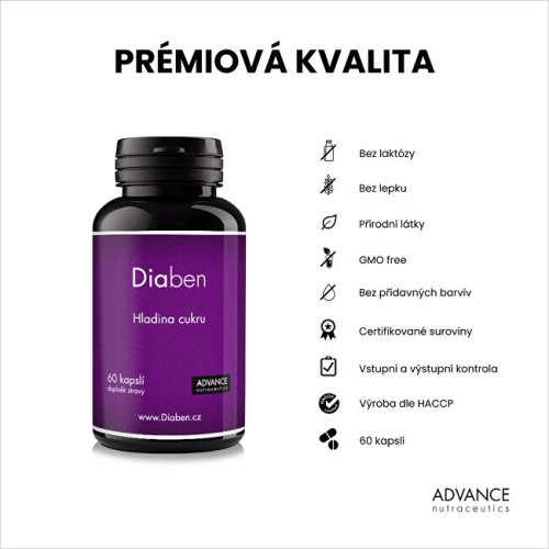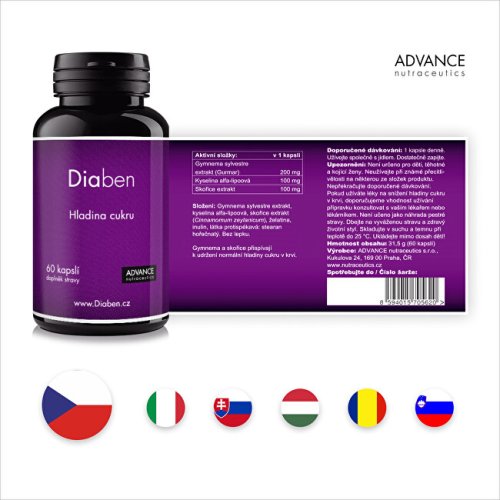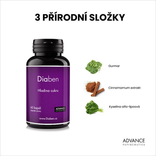 Doplněk stravy Diaben je unikátní kombinací tří přírodních látek - Gurmar, kyselina alfa-lipoová a extrakt ze skořice. Přispívá k udržení normální hladiny cukru v krvi.