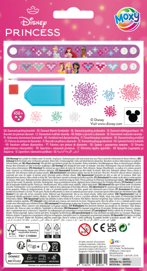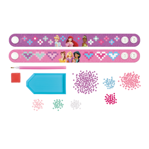 Vytvoř si své vlastní zářivé náramky s motivem Disney Princezen s pomocí diamantového malování! Tato zábavná kreativní sada obsahuje vše potřebné k ozdobení dvou originálních náramků třpytivými kamínky. Skvělá aktivita pro děti i dospělé, která podporuje fantazii a jemnou motoriku. Součástí balení aplikátor, dva ks náramků, pořadač, vosk a barevné kamínky.