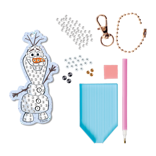 Vytvoř si vlastní třpytivou klíčenku s oblíbenými hrdinkami z Ledového království! Sada obsahuje vše potřebné k tomu, aby sis pomocí diamantového malování ozdobil klíčenku a dodal jí kouzelný lesk. Skvělý dárek a kreativní zábava pro všechny malé fanoušky Elsy, Anny a Olafa! Balení obsahuje šablonu klíčenky, aplikátor, třídič na kamínky, řetížek,karabinku a diamanty.