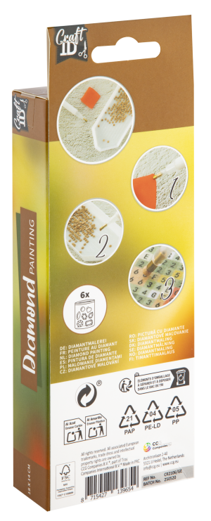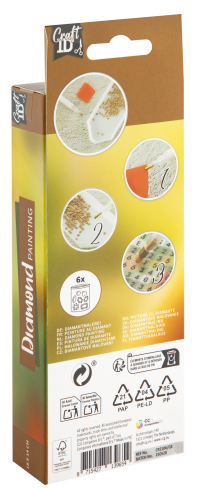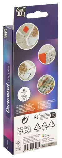Kreativní set diamantové malování obsahuje kamínky/diamanty různých barev, aplikační pero, lepící čtvereček, tácek a předlohu. Umísti podle čísel na předloze přiřazené kamínky a vznikne ti nádherný diamantový obrázek o velikosti 18x14 cm