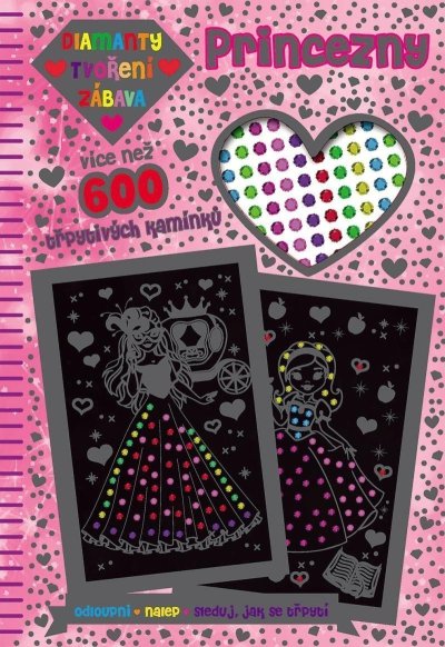 Děti objeví překrásný svět kamínkové zábavy. S více než 600 nalepovacími kamínky, které se třpytí jako diamanty, vytvoří hezké obrázky. Diamanty děti umísťují na správné místo podle očíslovaných teček a číselného kódu, který jim napoví, jakou barvu mají použít. Po zaplnění obrázků kamínky si je mohou dál vybarvovat, dokreslovat detaily… Malí umělci nebo umělkyně budou mít okouzlující obrázky půvabných princezen i pohádkových jednorožců, které si můžou třeba pověsit na zeď do svého pokoje nebo si o nich vymýšlet příběhy - o královně mořských víl, o projížďce princezny na duze nebo o tom, jak šla na maškarní ples.