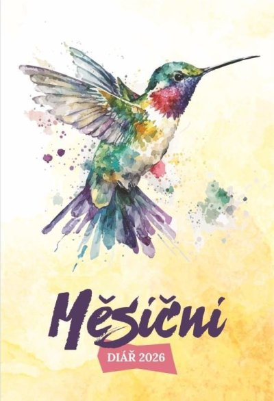 Kapesní měsíční diář 2026, který obsahuje přehledný kalendář 2026 a 2027, pracovní kalendář 2026, státní svátky a významné dny, jmeniny, měsíční fáze, prostor pro poznámky a pro osobní údaje.