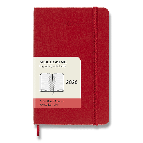 Diář Moleskine 2026 - tvrdé desky, S, denní, červený