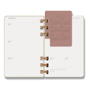 Rozměry: 13 x 21 cm, 100 listů, Diář má papír s gramáží 100 g/m², který neobsahuje kyseliny., Diář obsahuje:, * kalendář, * tři záložky, * stránku se samolepkami, * místo pro vaše nápady a poznámky, * praktickou vnitřní kapsu na vizitky, Diář je v anglickém jazyce.