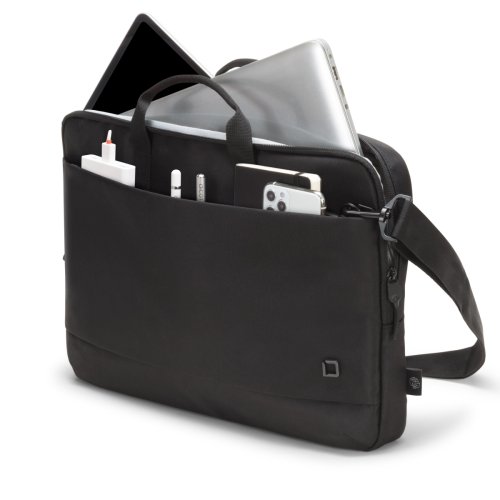 The Eco Slim Case MOTION is a light, slim laptop case. Devices between 12 and 13.3" are well protected in the padded notebook compartment. The slip pocket provides reliable protection for tablets up to 11". The case is comfortable to carry thanks to its padded carrying handle and adjustable shoulder strap. The extra compartment on the back is especially handy for easily storing documents. Your smartphone or other smaller items like cables, pens or chargers can be stored in the convenient front pocket, so they are always on hand. The bag is made of water-repellent material to protect the contents even on rainy days. The Eco Slim Case MOTION is therefore perfect for you if you are always on the go and want to support the recycling of PET bottles with an eco-friendly case.