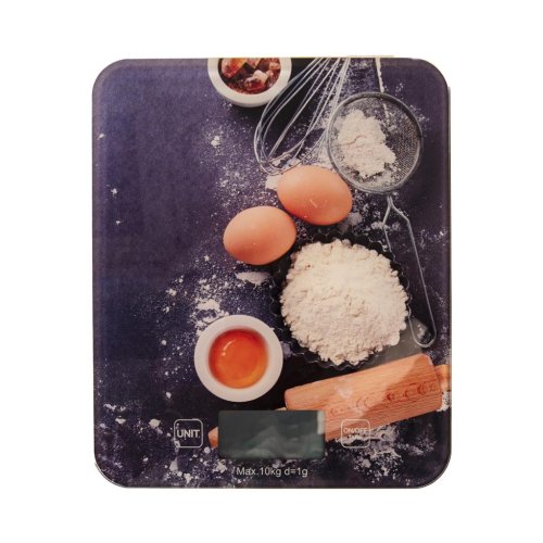 Kuchyňská váha s LCD displejem. Možnost vážení v g, kg, lb, oz, ml, fl. oz. Maximální váživost 10 kg, minimální měrná hodnota 1 g. Funkce automatické vypnutí a dovažování. Napájení na 2x AAA 1.5V (není součástí balení). Indikátor slabé baterie a přetížení. Rozměr 30 x 22 x 2.1 cm. EAN 8592381152123