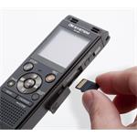 Interní paměť záznamníku je 4 GB, nahrávky můžete ukládat také na microSD paměťovou kartu. Maximální délka záznamu je až 1040 hodin. Nahrávání probíhá ve dvou volitelných formátech PCM nebo MP3. Všechny informace o nahrávání a přehrávání vám spolehlivě zobrazí digitální displej, který je umístěný na přední straně záznamníku.