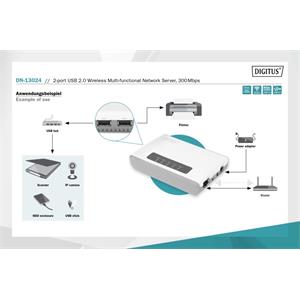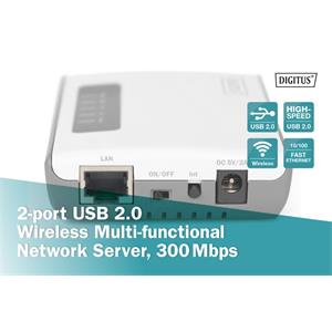DIGITUS 2portový bezdrátový multifunkční síťový server USB 2.0, 300 Mb / s