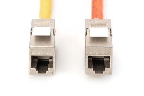 Stínované CAT 6 moduly DN-93615 od společnosti DIGITUS® zaujmou standardy orientovanými na budoucnost a špičkovou kvalitou vaší sítě. Kompaktní konstrukce umožňuje sériovou instalaci na panel 1U 483 mm (19 ”). Instalace bez použití nástrojů používá kolejnice LSA barevně označené podle EIA / TIA 568 A&B. Jeho kompaktní design také znamená, že modul se hodí do designově kompatibilních modulárních rozvodných skříní.