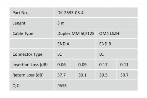DIGITUS Fiber Optic Patch Cord, LC to LC, Multimode OM4 - 50/125 µ, Duplex Length 3m