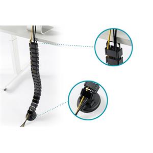 Kabelový had je dokonalým doplňkem pro skrytí kabelů vedoucích od podlahy k desce stolů výškově nastavitelných a volně stojících stolů