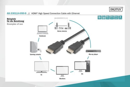 Digitus HDMI High Speed + Ethernet připojovací kabel, 2xstíněný, 5m