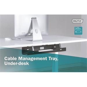 "Tento zásobník na kabely pod stolem poskytuje dostatek úložného prostoru pro kabely, zásuvkové lišty a další věci. Tento výrobek je vyroben z práškově lakované oceli a je robustní a odolný. Otevřená konstrukce usnadňuje vedení a ukládání kabelů a zásuvkových lišt. Kanál lze připevnit k psacímu stolu typu sit/stand i k tradičnímu psacímu stolu. Je zde vytvořen dostatečný prostor pro napájecí kabely, síťové a počítačové kabely. Řešení pro vedení kabelů umožňuje pohyb stolu se sedací/stojící částí a zároveň zabraňuje poškození kabeláže. Elegantní vzhled se dokonale hodí k čistému, otevřenému designu vašeho pracoviště. "