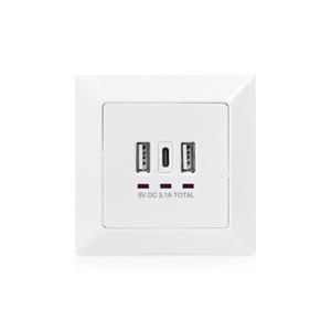 Zásuvka na zeď, 2x USB 1x USB typu C 5V 3.1A, vstup: AC250V 50HZ, RAL 9003