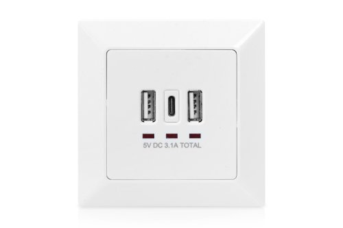 DIGITUS Nabíjecí zásuvka na zeď pro smartphony/tablety s 2 x USB A, 1 x USB Type-C ™, 3100 mA, UP