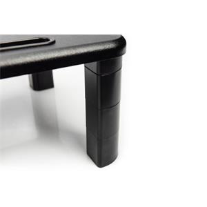 S ergonomickým podstavcem monitoru máte snadno použitelný produkt, pomocí kterého můžete svůj stůl individuálně uspořádat. Modulární konstrukce umožňuje snadno změnit výšku držáku přidáním nebo odebráním podpůrných prvků. Kromě toho je v přední části držák smartphonu a tabletu s otvory pro nabíjení nebo připojení kabelů.
