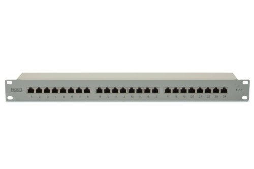 Stíněné panely CAT 5e Patch od společnosti DIGITUS® jsou k dispozici ve verzi 16 nebo 24 portů. Vyhovuje normám ISO / IEC 11801 a EN 50173. Skříň je vyrobena z pozinkované oceli válcované za studena z 1,5 mm, a proto je dokonale vhodná pro montáž na 19 "stojany.