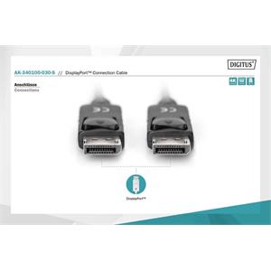 Digitus Připojovací kabel DisplayPort 1.2, DP M/M, 3,0 m, se západkou, Ultra HD 4K, bl