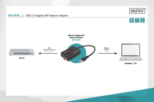 Adaptér USB 3.0 Gigabit SFP vám umožní rozšířit váš notebook na připojení SFP a připojit se přímo k síti optických vláken pomocí vhodného vysílače a přijímače optických vláken. Toto rozhraní z optických vláken je tou pravou volbou jak pro mobilní použití ve spojení s notebooky, tak pro stacionární použití ve stolních systémech. Tento adaptér SFP v datových a serverových centrech navíc slouží svému účelu při monitorování a řešení problémů s aplikacemi, což vám umožňuje zasahovat do infrastruktury optických vláken přímo a s plnou šířkou pásma. Snadno se používá, nabízí množství možností a je perfektním doplňkem pro většinu počítačů, které nemají standardní připojení SFP. Díky virtuální jednotce není nutná žádná instalace ovladače z CD - připojte se a začněte. Napájení je zajištěno také přes rozhraní USB 3.0. Pokud připojení Wi-Fi představuje bezpečnostní riziko a měděná připojení jsou příliš pomalá, připojení pomocí optických vláken poskytuje správné řešení pro vaši síť. Adaptér je kompatibilní s Windows, MacOS, Google Chrome a všemi dalšími systémy, které jsou kompatibilní s USB 3.0.