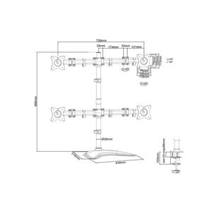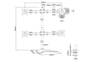 Digitus stolní stojan pro čtyři monitory/Upínací držáky, černý 15-27 ", max. Zatížení 4x8 kg, VESA max. 100x100