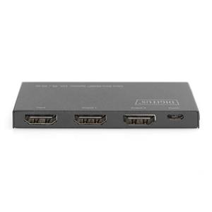 Vysoce výkonný HDMI Splitter DIGITUS® rozděluje zvukové a obrazové signály vašeho zařízení HDMI na dvě obrazovky, televizory nebo projektory s rozlišením UHD 4K / 60 Hz. Už žádné únavné opětovné připojení kabelů. Kromě toho jsou podporovány HDR, HDCP 2.2 a 3D - také celková šířka 18 Gbps pro plynulé přehrávání ve vynikající kvalitě. Rozbočovač HDMI® lze dodávat prostřednictvím existujícího portu USB umístěného na televizním zařízení nebo alternativně prostřednictvím nabíjecího adaptéru USB využívajícího elektřinu. Můžete kaskádovat několik rozbočovačů až do 8 úrovní.